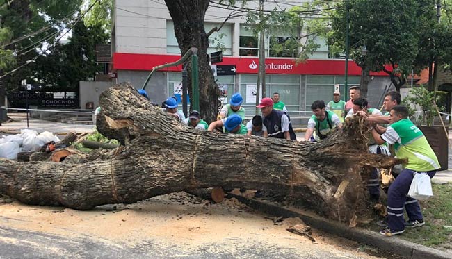 Un árbol de más de 100 años y 30 metros de altura se cayó por el viento de anoche, no ocasionó daños pero cortó el tráfico de Av. Del Libertador