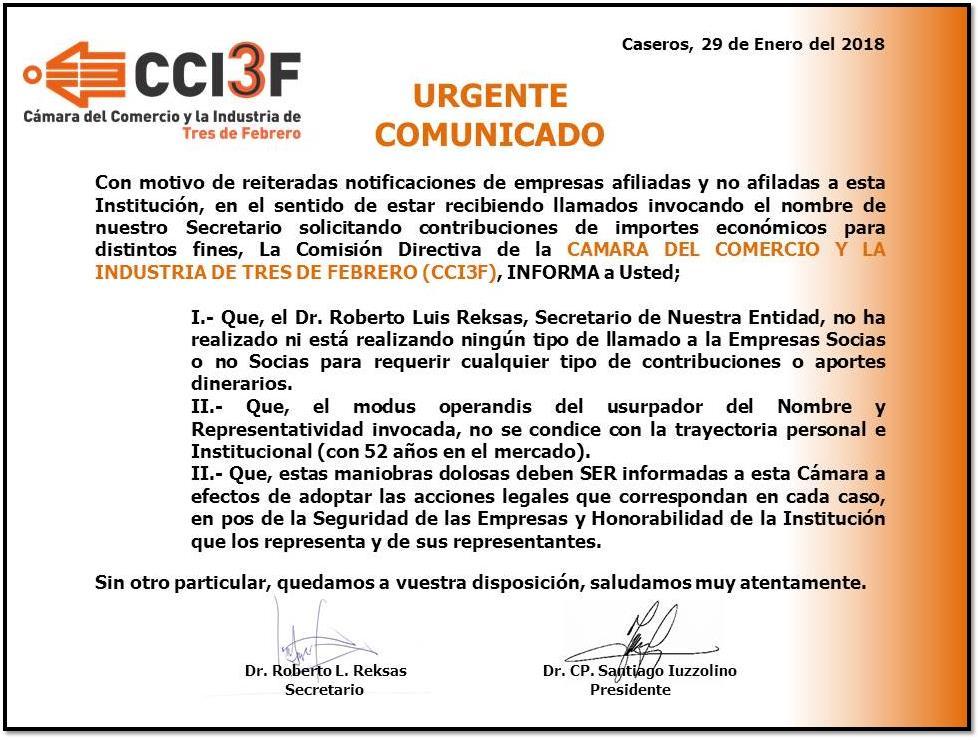 La entidad gremial empresaria alerta a la comunidad por una falsa campaña que pide dinero a nombre de unos de sus dirigentes