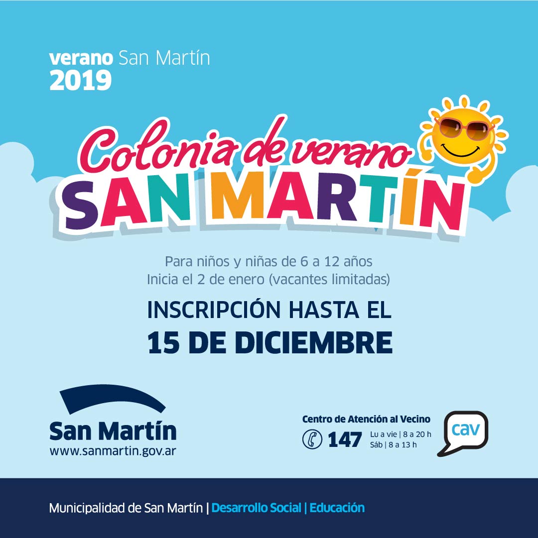 Para solicitar más información, los interesados pueden comunicarse con el Centro de Atención al Vecino al 147 de lunes a viernes de 8 a 20, y los sábados de 8 a 13, o enviar un mail sanmartincolonia@sanmartin.gov.ar.