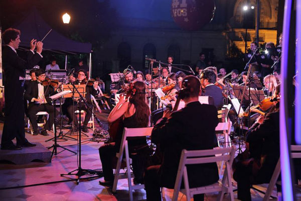 Pasadas las 20, con la Plaza Mitre repleta, comenzó el show en el que, a lo largo de una hora y media, la Orquesta Sinfónica Juvenil sanisidrense y el Coro de la Compañía Lírica G. Verdi, estuvieron acompañados por el tenor Darío Volonté, la mezzosoprano Vera Cirkovic y la soprano Paula Bresci Raña.