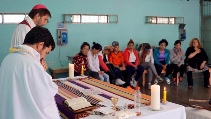 Allí, Fassi celebró la misa en el sector femenino, acompañado por referentes de la pastoral carcelaria de San Isidro.
