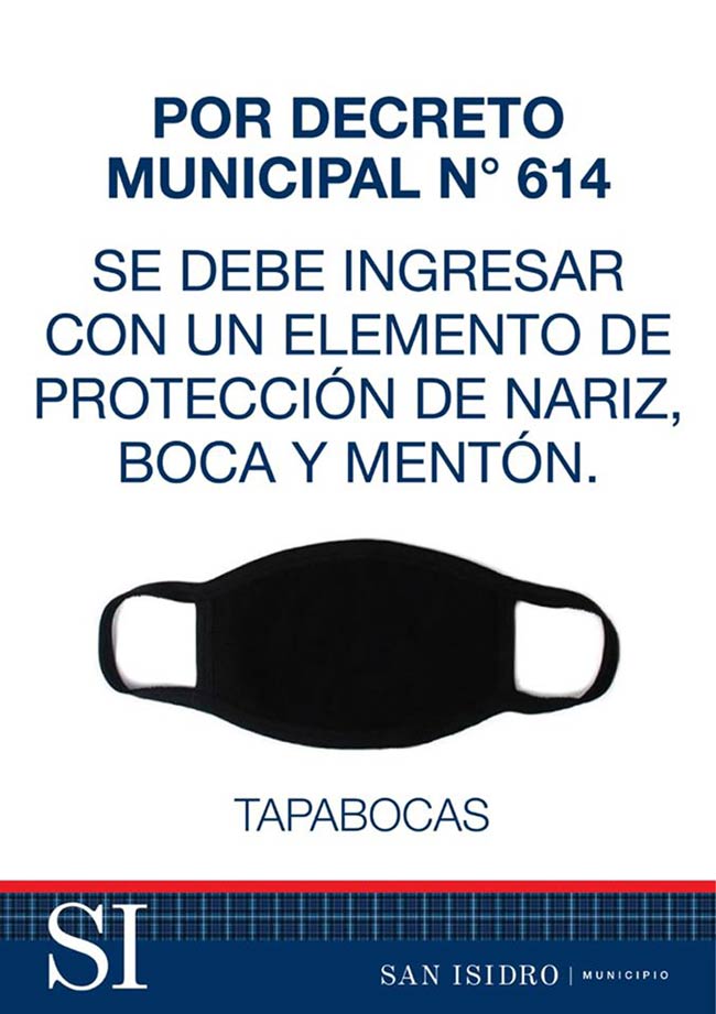 A través del Decreto 614, el intendente Gustavo Posse, estableció el uso obligatorio de elementos de protección que cubran la nariz, la boca y el mentón en establecimientos comerciales, dependencias u oficinas municipales de atención al público y en medios de transporte público de San Isidro.