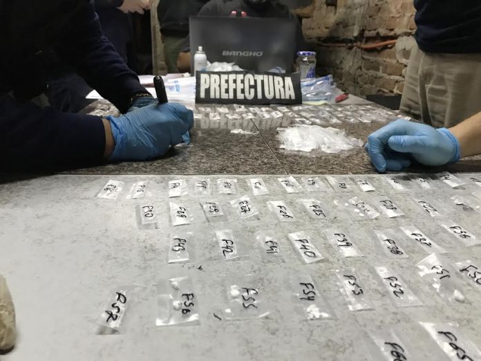 Más de 1100 dosis de cocaína listas para la venta fueron incautadas por la Justicia tras la intervención de la Prefectura
